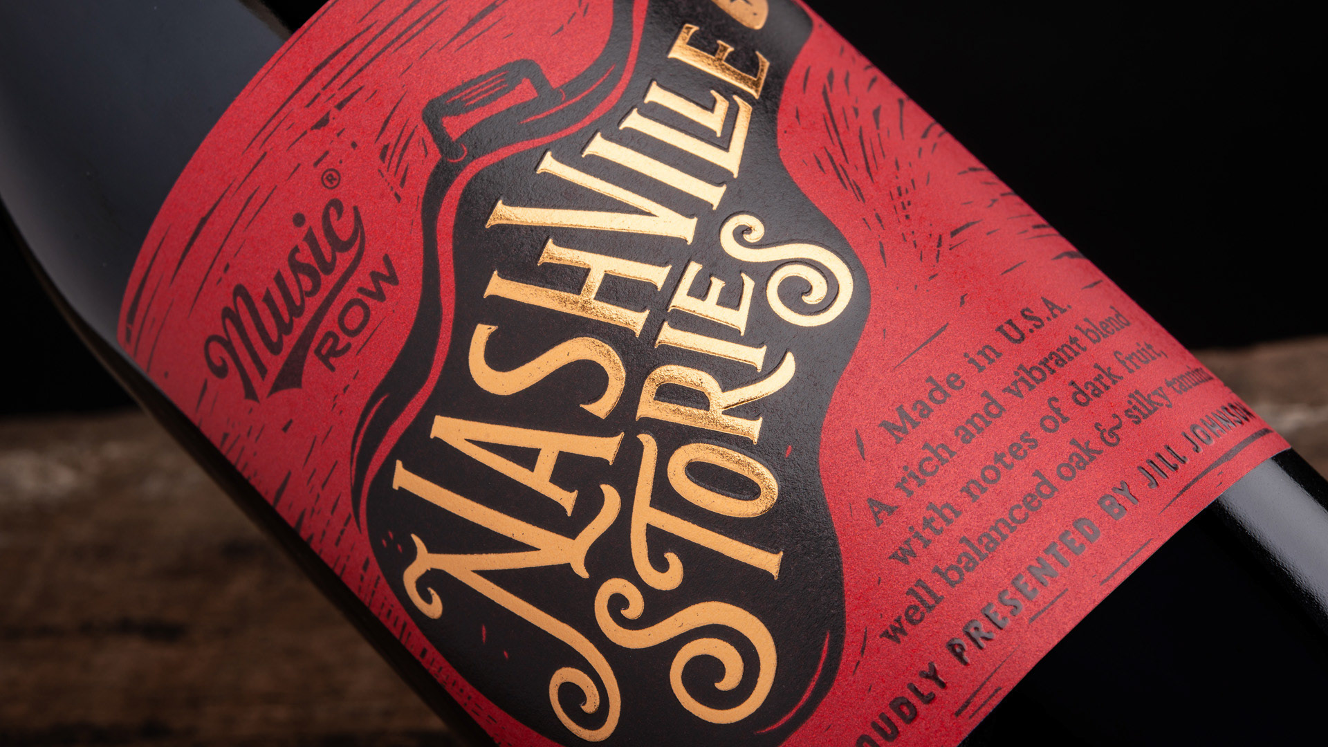 Solution: We created an icon for the name “Nashville Stories” which is strongly connected to both music and travelling: the guitar case. The artist name was not the main feature on the label to make sure that wine attracted both the loyal fans and those who just appreciated American-style food.